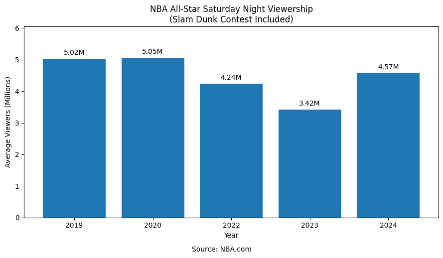 The data below highlights the contrast between peak interest during iconic dunk moments and the lower averages seen in recent All-Star Saturday Night broadcasts